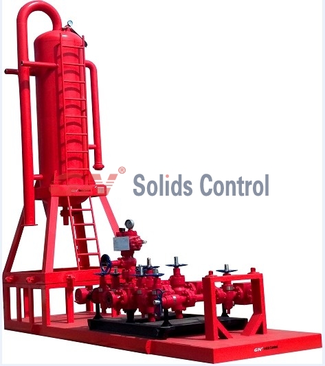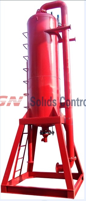 液氣分離器是用于鉆井泥漿中的氣體分離設(shè)備。通常用于節(jié)流管匯之后,鉆井振動篩之前,用于分離氣侵泥漿中的有害氣體。分離后的氣體通過管匯引流到空曠的作業(yè)空間,通過電子點火裝置進行燃燒。