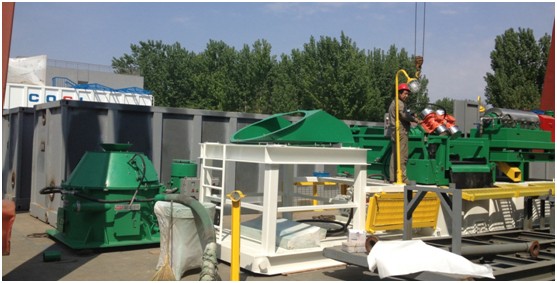 在鉆井現(xiàn)場(chǎng)兩臺(tái) GNZS853 140m³/h處理量的鉆井液振動(dòng)篩分離回收鉆井泥漿中大量的固相顆粒。一臺(tái)除砂除泥器一體機(jī)(GNZS853-3S16N,3個(gè)除砂旋流器和16除泥旋流器)分離比較小的固相顆粒。通過(guò)凈化的鉆井泥漿,達(dá)到了很好的凈化效果。      作業(yè)現(xiàn)場(chǎng)臥螺離心機(jī)安裝在泥漿罐上用來(lái)控制在鉆井地層發(fā)生變化時(shí)回鉆泥漿的穩(wěn)定性,同時(shí)可以根據(jù)現(xiàn)場(chǎng)需求配備不同比重的泥漿。